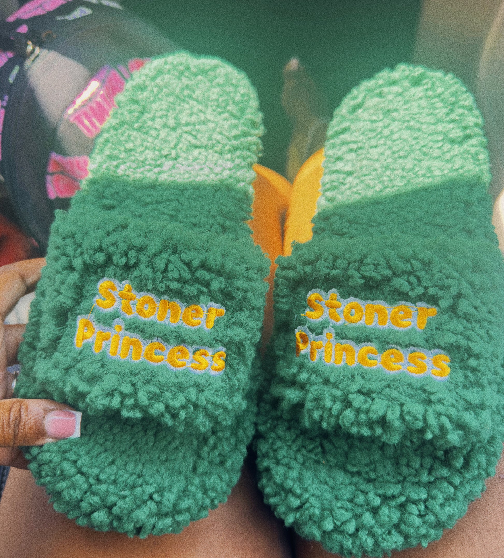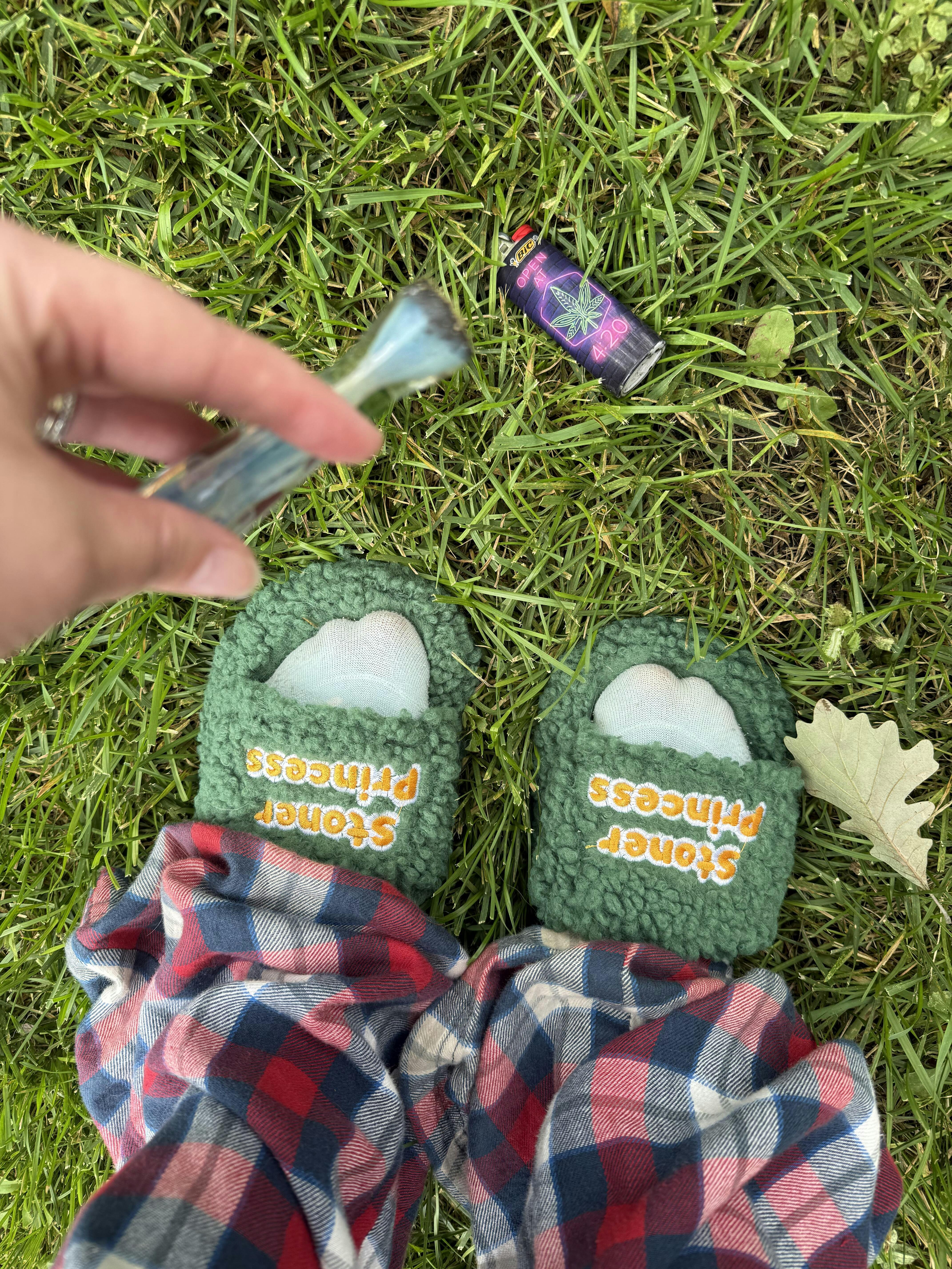 So cute! The green is such a pretty, vibrant shade. LOVE that they’re a hard bottom so I can wear them outside on my smoking adventures ☺️